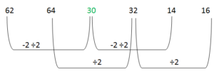 2 points62, 64,______, 32, 14,16