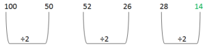 2 points100, 50, 52, 26, 28,______
