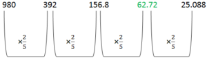 2 points980, 392, 156.8,______, 25.088, 10.0352