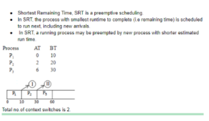 2 pointsConsider three CPU-intensive processes, which require 10, 20 and 30 time units and arrive at times 0, 2 and 6, respectively. How many context switches are needed if the operating system implements a shortest remaining time first scheduling algorithm? Do not count the context switches at time zero and at the end.
