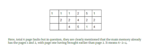 → In FIFO, the page fault may or may not increase as the page frames increase, but in Optimal and stack-based algorithms like LRU, as the page frames increase the page fault decreases.