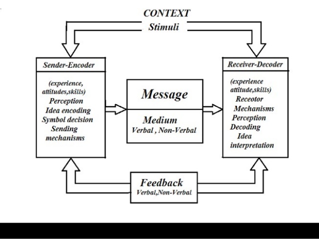 यह संचार प्रक्रिया मॉडल तीन लेखकों द्वारा प्रस्तावित है इस मॉडल के अनुसार; संचार प्रक्रिया के छह घटक हैं: –